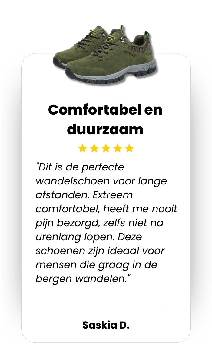 We gebruiken materialen van hoge kwaliteit, ademend en waterdicht, wat zorgt voor een lange levensduur van je schoenen. En met onze antislipzool is elke stap die je zet stabiel en veilig, ongeacht het terrein onder je voeten.