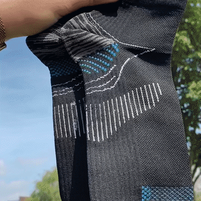 Door de uitzonderlijke textuur van de stof ontstaat er een therapeutische druk die diep doordringt in de spier- en peesregio's, waardoor het de doorbloeding bevordert en zwelling vermindert.