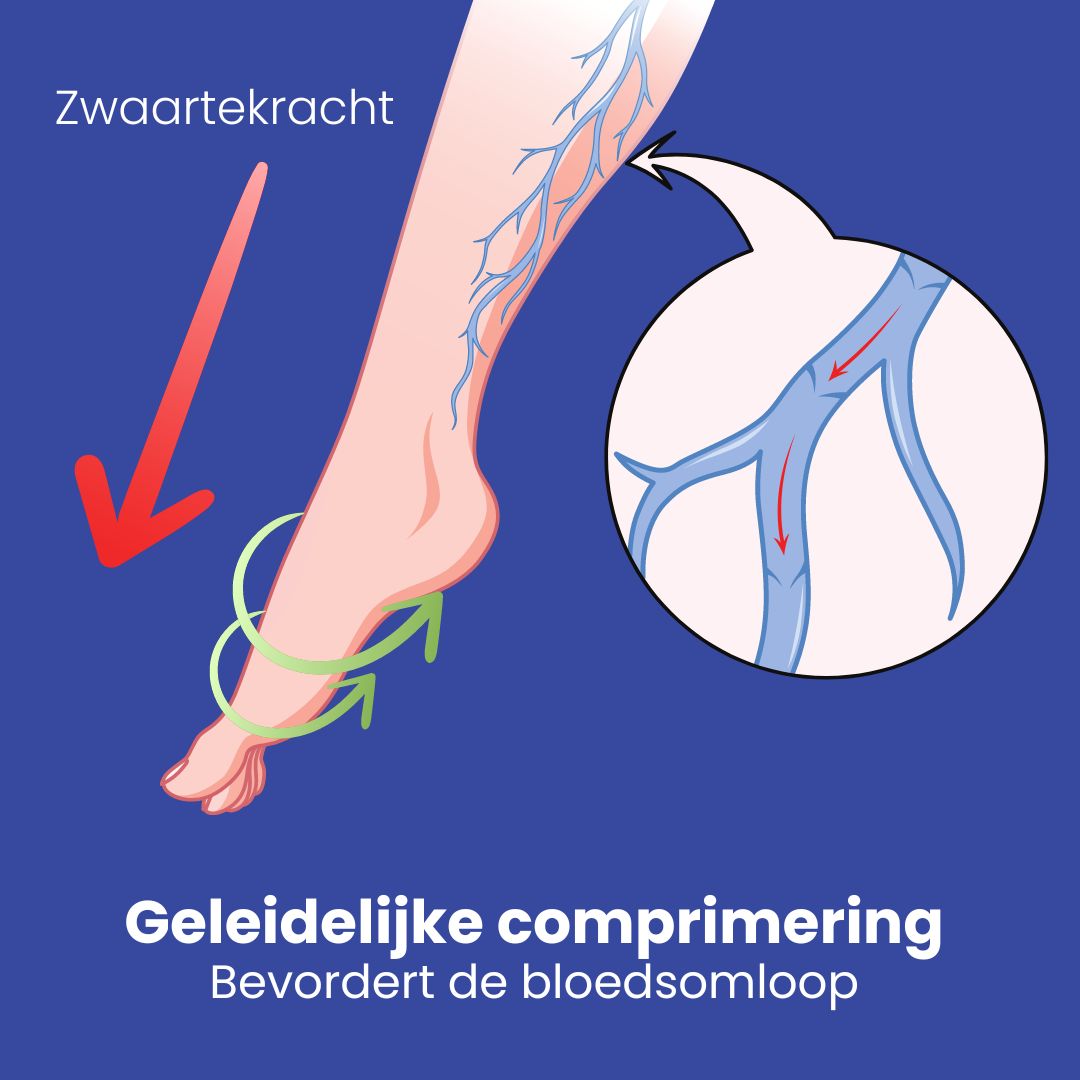 Ze ondersteunen de bloedcirculatie, verminderen vermoeidheid en pijn en dragen bij aan een beter welzijn.